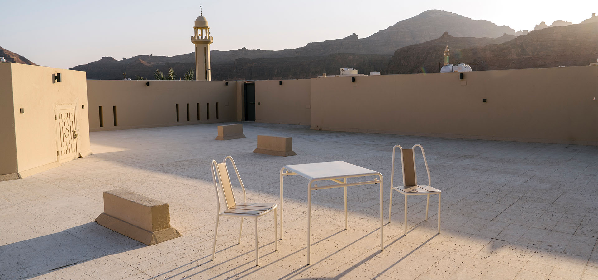 Entdecken Sie in der Villa Hegra die Stühle der Kollektion OSAKA 25, entworfen vom französischen Designer Jean-Baptiste Fastrez und herausgegeben von Tectona in Partnerschaft mit dem Mobilier National. Funktionale Möbel mit klaren, zeitgenössischen Linien. Diese speziell für die Villa Hegra entwickelte Ausstattung ist Teil ihrer Zusammenarbeit mit dem Mobilier National, der künstlerische Residenzen im Bereich Design, zeitgenössische Kreationen und Austausch zwischen saudischem und französischem Know-how vereint. credit photo : © Lorenzo Arrigoni