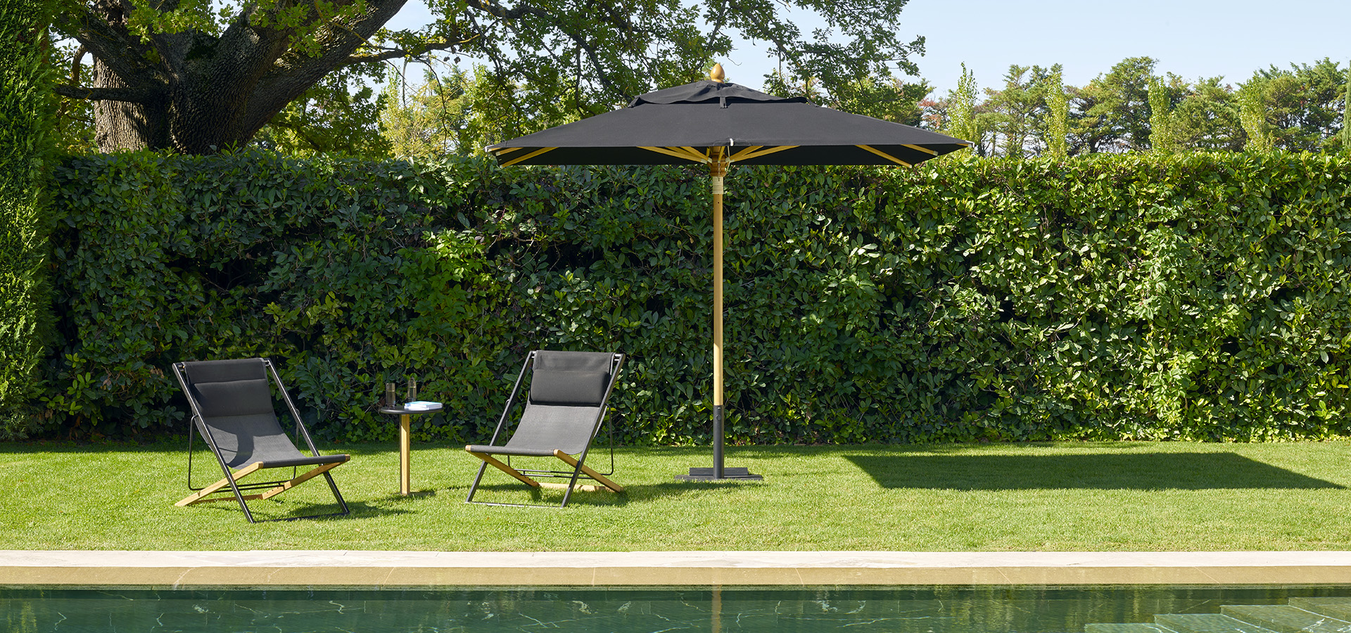 Combining the lightness of aluminium with the beauty of teak, the Horizon folding deckchair owes its comfort to the flexibility of the black Batyline fabric that covers it.