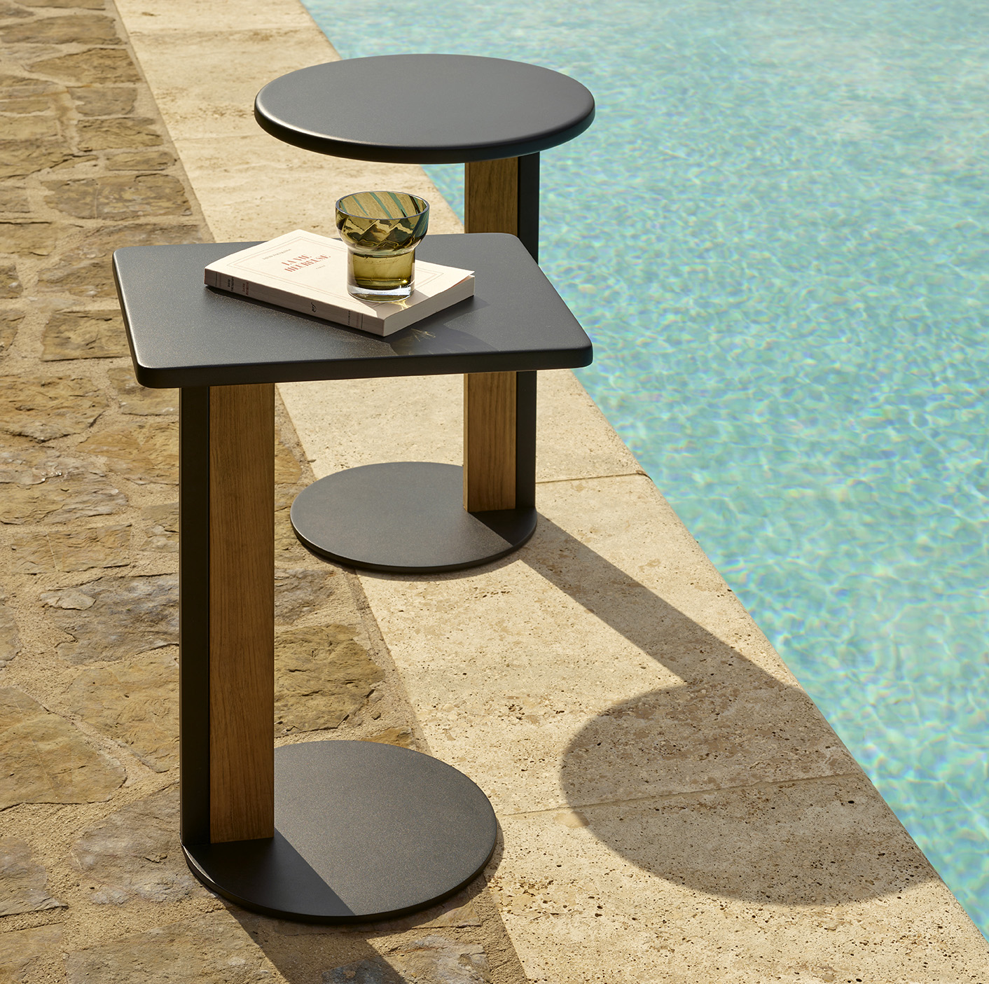 While you’re lying down on a Horizon sun lounger, it takes minimal effort to reach out to take or put down a glass, a magazine or a book on one of the two side tables specially created for the collection.
