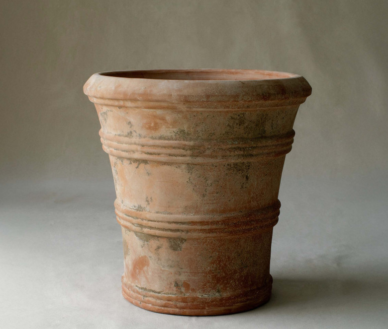 Ecco un vaso delicato e versatile, ornato da fasce anulari che ne sottolineano la bellezza con semplicità. Può stare da solo o inserirsi armoniosamente in un gruppo di vasi, creando la giusta profondità per piantare le rose.